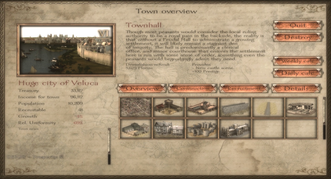 Стилистическое богатство на этом не заканчивается. Один из козырей мода - его сцены. Здесь авторы, несомненно, поработали на славу: многие города были полностью переделаны, в других как минимум подтянули текстуры. Переработаны таверны, покои лордов, появились уникальные локации, например, церкви. Пускай движок первой части Mount&Blade уже и слаб, но разработчики Nova Aetas все равно постарались вытащить из него по максимуму, даже шейдеры подключили. Но и без них новые сцены впечатляют проработанностью и вниманием к деталям. Не отстает от них интерфейс, всем своим видом говорящий как о ренессансе в Warband, так и многолетних достижениях мододелов. Это я, если что, о всяких дополнениях, вроде политической карты. На этом фоне разве что странным смотрится отсутствие скрипта для просмотра линеек войск - мне казалось, его уже запихнули во все модные проекты.