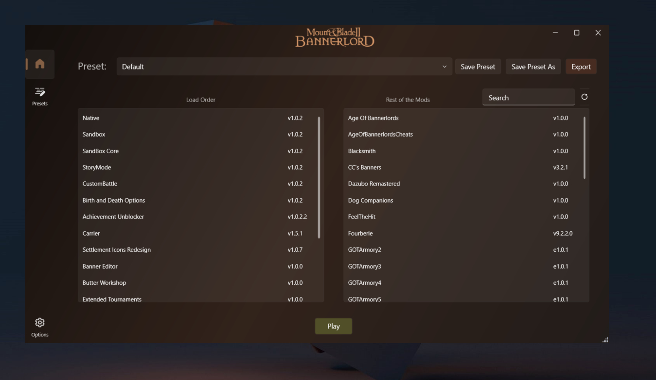 Novus Bannerlord Launcher - это не просто еще один загрузчик игры, а достаточно полезное для любителей большого количество модов решение. Его самая главная особенность, выделяющая проект на фоне остальных аналогичных проектов - поддержка наборов запуска. Благодаря им, вы сможете создавать собственные группы модов для того, чтобы затем быстро переключаться между ними и, само собой, в дальнейшем их настраивать. Кроме того, данный проект поддерживает строку поиска, быструю систему установки модификаций, проверку каждого мода на предмет совместимости с игрой, разблокировку dll файлов для установленных вручную проектов, а также предоставляет доступ к некоторым настройкам игры.