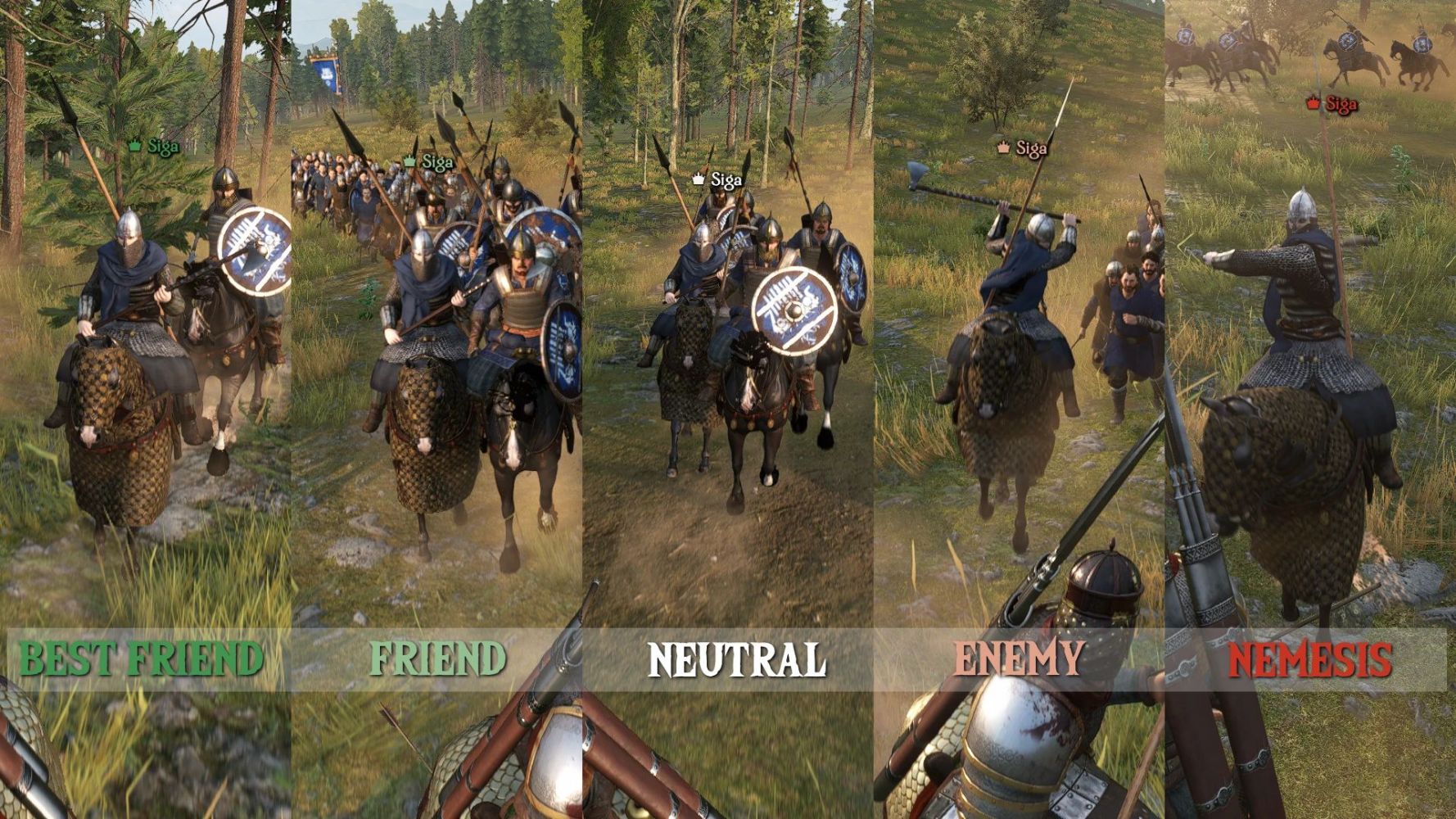 Устали от однообразия лордов в сражениях? Nemesis призван оживить ситуацию. Благодаря стараниям его автора, лорды перестанут быть молчаливыми статистами и начнут осыпать вас насмешками и оскорблениями посреди битвы. Приготовьтесь к незабываемым впечатлениям на поле боя, где скрещиваются мечи и летят остроумные реплики. На данный момент в моде представлены несколько записанных профессиональными актерами голоса - как мужской и женский, а также множество основанных на них уникальных голосовых паттернов, отличающихся по игровым фракциям. Лорды реагируют на действия игрока в бою, включая его удары и блоки. Кроме того, теперь цвет имени будет отображать ваши отношения с лордом.