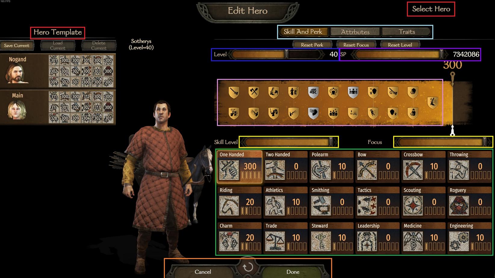 Этот немного читерский, но очень полезный мод, особенно для людей, недавно начавших знакомиться с игрой, который поможет исправить допущенные ранее ошибки при создании и прокачке вашего персонажа. Теперь вы сможете изменить уровень героя, очки атрибутов, навыки, точки фокусировки и черты характера с помощью добавленных кнопок в экран энциклопедии. Также функционал мода позволяет задать новые подробные параметры настройки личности персонажа, такие как вес, телосложение и возраст, а также дает возможность изменять внешний вид вашего героя. С последних версий редактировать можно различные аспекты деятельности вашего клана и принадлежащих вам городов.
