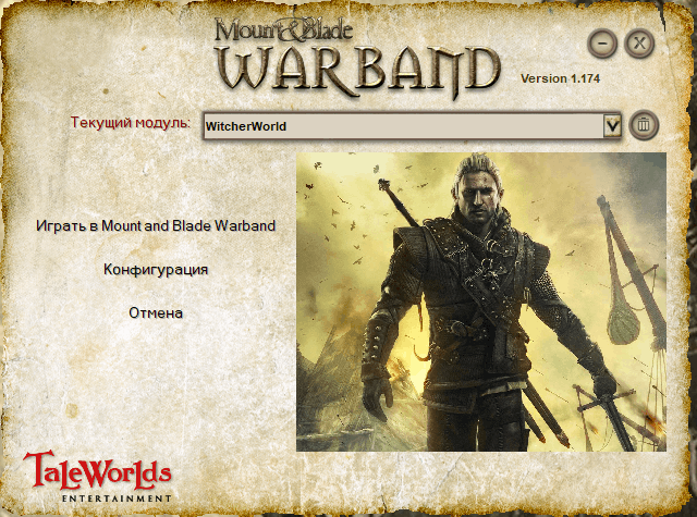 Эта модификация создана по мотивам "Ведьмака" для Mount and Blade Warband. Всего 9 фракций, новый юнит, добавлено много брони, в том числе броня ведьмака, немножко нового оружия, татуировка на лице при создании героя, изменённые заставки и парочка флагов. Названия населённых пунктов изменены, можно найти Новиград, Верген, Велен.