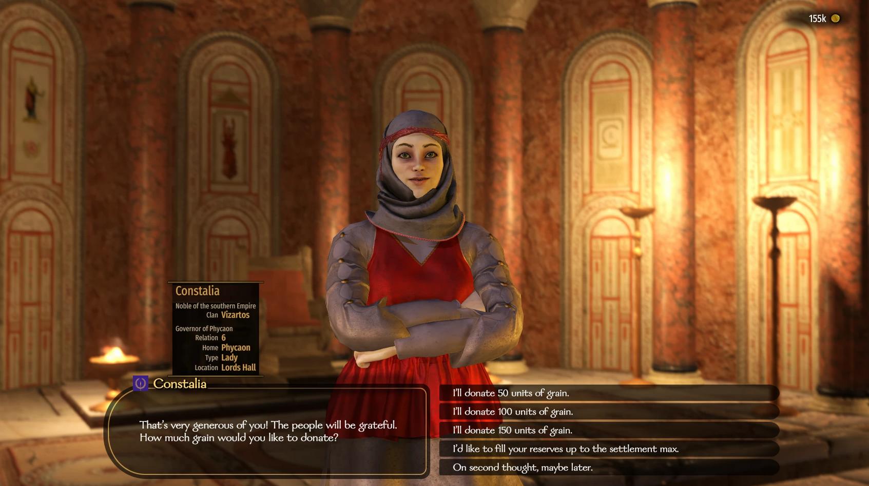 Этот очень полезный мод позволяет игроку передавать зерно непосредственно в зернохранилища поселений посредством диалога с губернаторами и владельцами поселений, улучшая отношения с ними и другими известными людьми. Он идеально подходит для тех, кто хочет быть великодушным правителем, чтобы стратегически улучшать отношения с ключевыми фигурами или сыграть роль щедрого лорда, заботящегося о благополучии своей недвижимости. Независимо от того, поддерживаете ли вы свои собственные владения или завоевываете расположение в других странах, пожертвования своим зерном - это быстрый способ изменить ситуацию к лучшему.