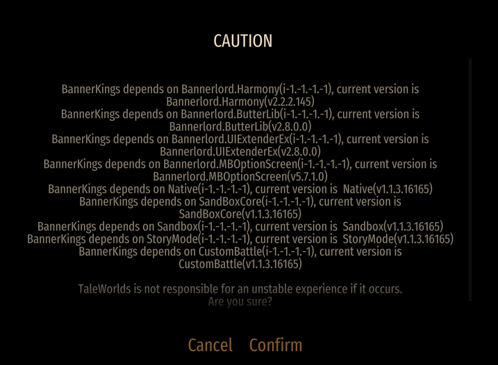 Что не так комрады? Модули самой игры новее модификации, надо откатить версию игры?